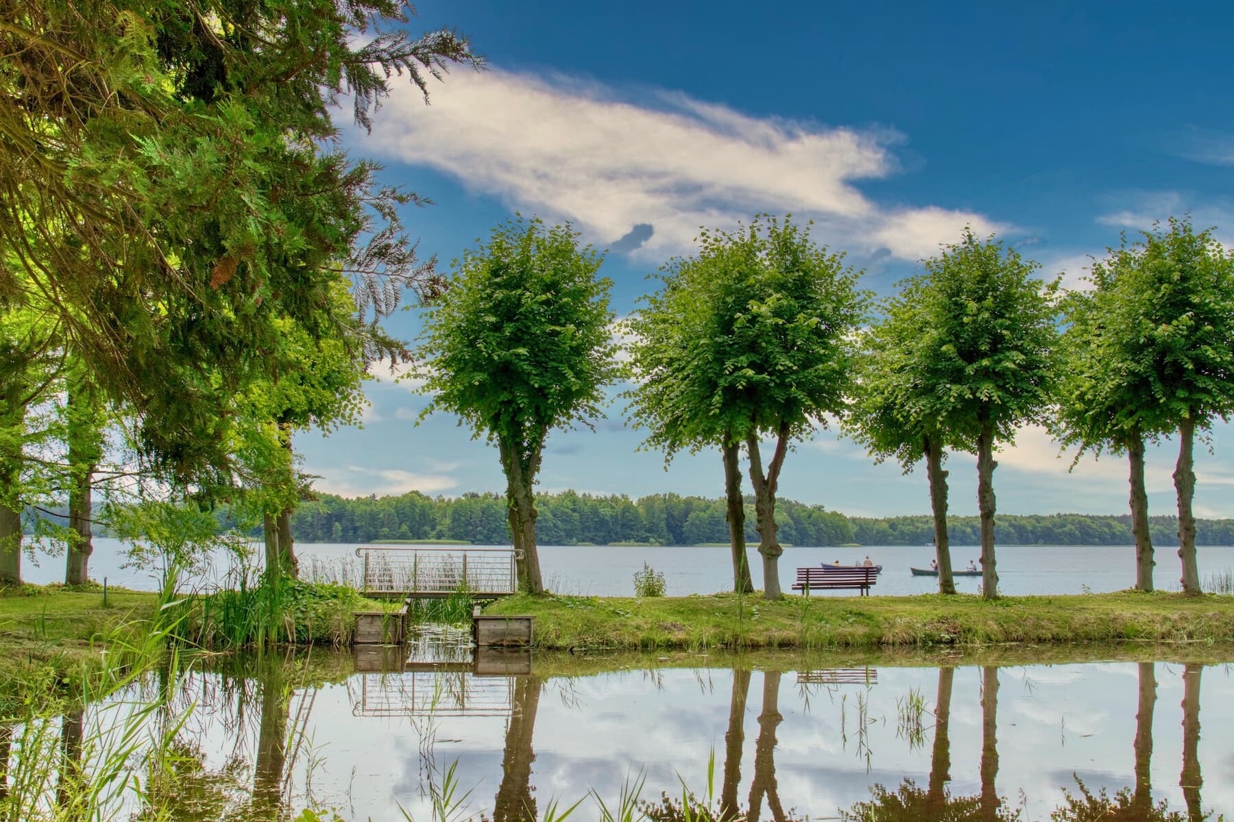 Der weitläufige, liebevoll gepflegte Park mit uraltem Baumbestand ist zu allen Jahreszeiten eine Oase der Ruhe. Große Terrassen, das Seeufer sowie lauschige Sitzecken und Pavillons im Garten bieten Rückzugsorte zum Entspannen und für gute Gespräche. Für Bewegungshungrige stehen Kanus und Fahrräder bereit, und ein Sprung ins kühle Nass des Großen Lychensees ist direkt von der Badestelle aus möglich.